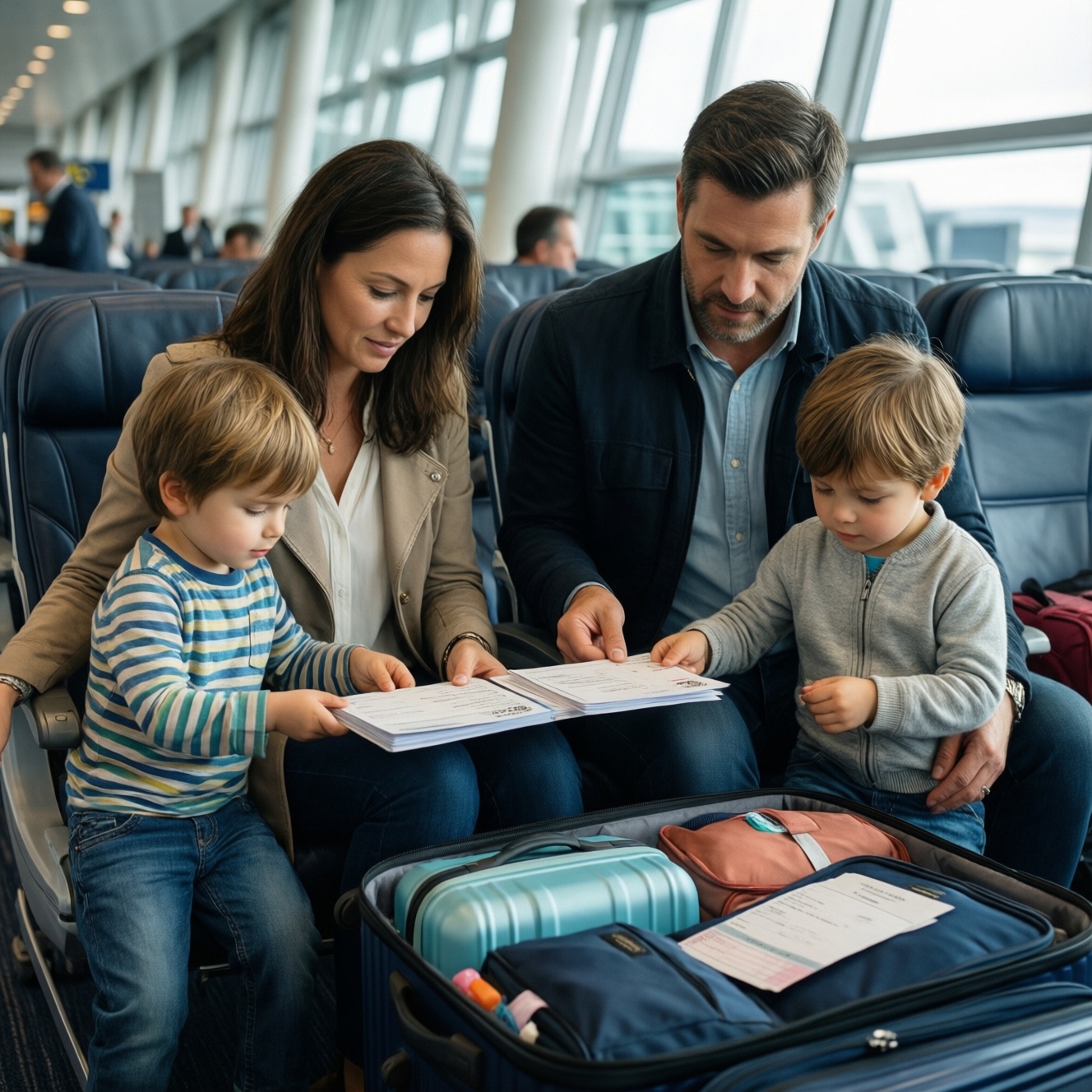 Соберите "папку семьи" так, чтобы всё доставалось за минуту: оригиналы + копии (в телефоне и отдельно). Требования зависят от направления и статуса сопровождающих; заранее сверяйте условия въезда и правила перевозчика.